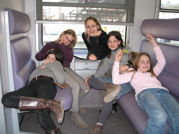 01) Sarah met klasgenootjes in de trein