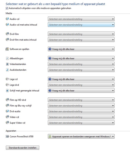 Automatisch Afspelen > instellen |